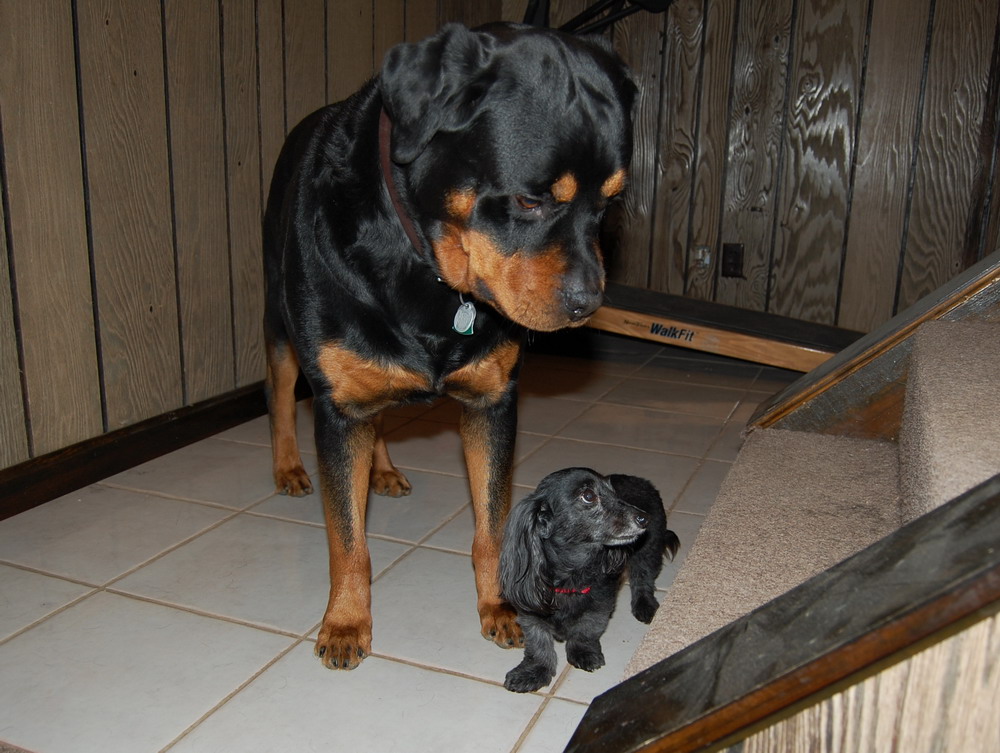 Our friend Lucy has come back from North Carolina to find an apartment here and she is staying with us for a few weeks. She brought her little Dachshund named Tinkerbelle with her. Our Rottweilers have been so excited with their new visitor and have made friends with her and they go everywhere in the house together.